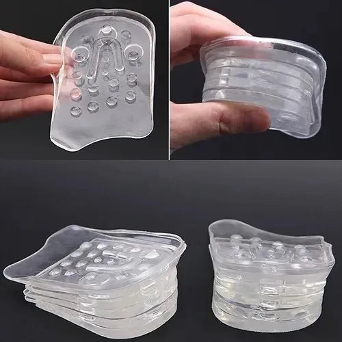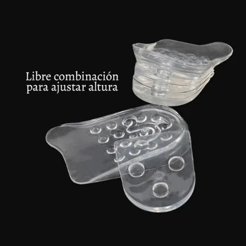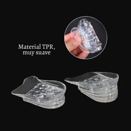 Elaboradas en silicona de alta calidad con nanotecnología, estas plantillas son resistentes, fáciles de lavar y no generan malos olores. Gracias a su transparencia, permanecen invisibles incluso en zapatos, tenis, botas o tacones. Además, puedes ajustar la altura desde 1 hasta 5 cm según tus necesidades, lo que te permite usarlas de manera gradual hasta alcanzar la estatura que deseas.